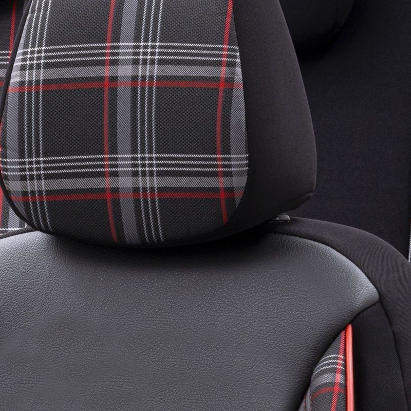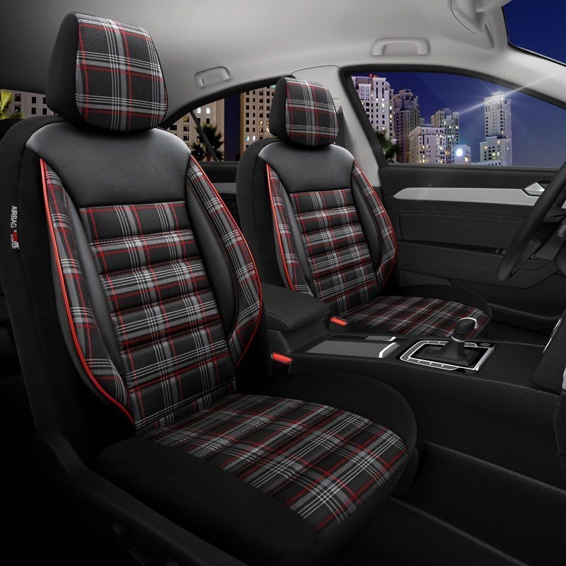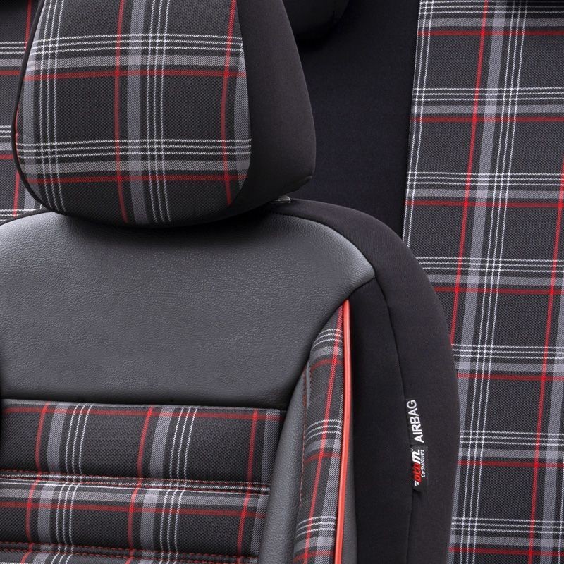 Universele Stoffen Stoelhoezenset 'Sports' Zwart/Grijs/Rood - 11-delig - geschikt voor Side-Airbags