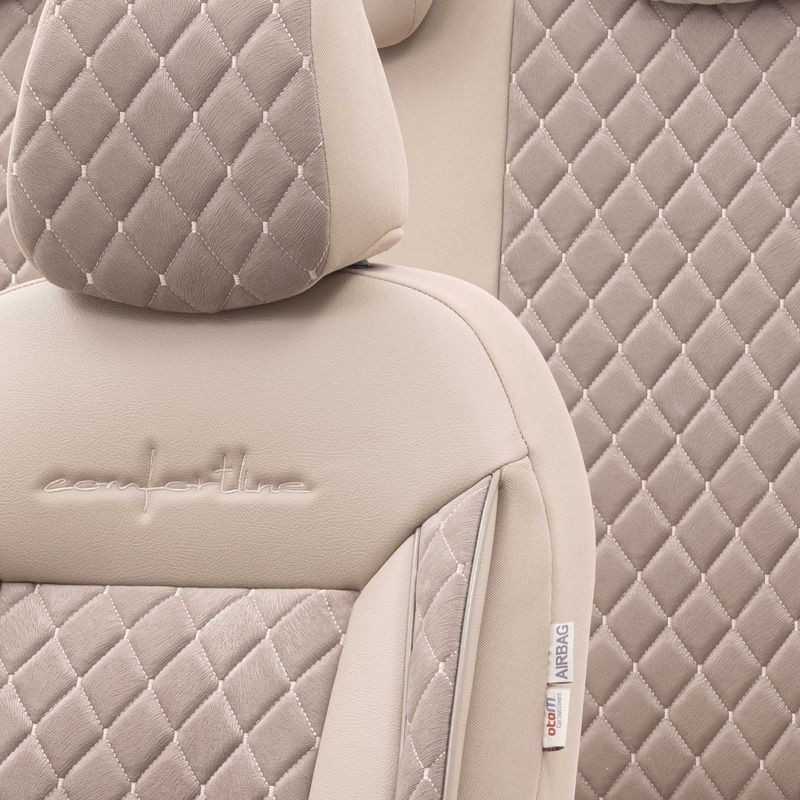 Universele Velours/Stoffen Stoelhoezenset 'Comfortline VIP' Crème - 11-delig - geschikt voor Side-Airbags