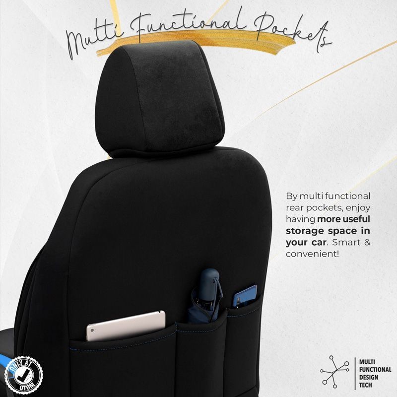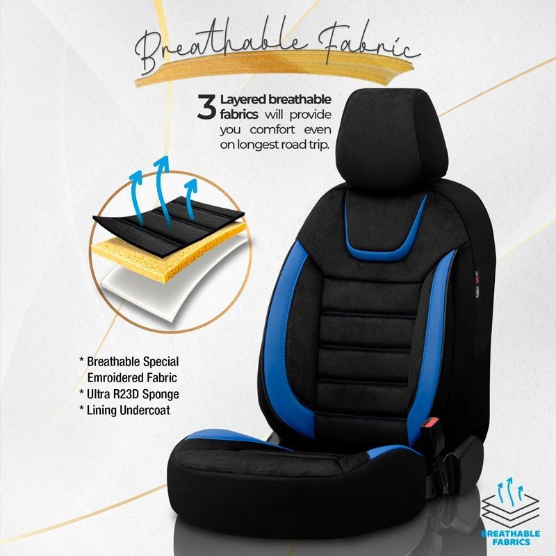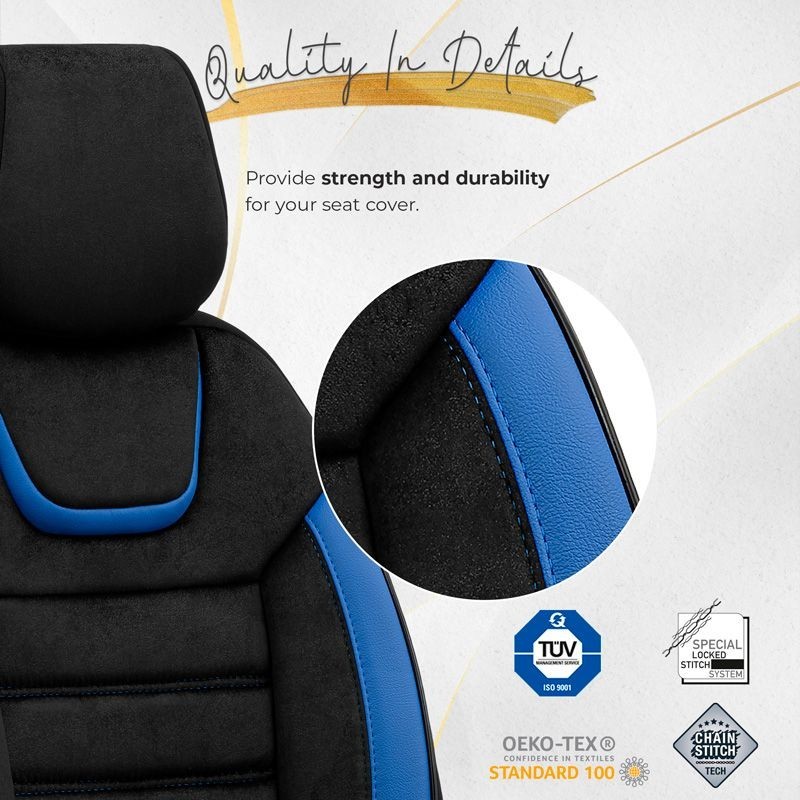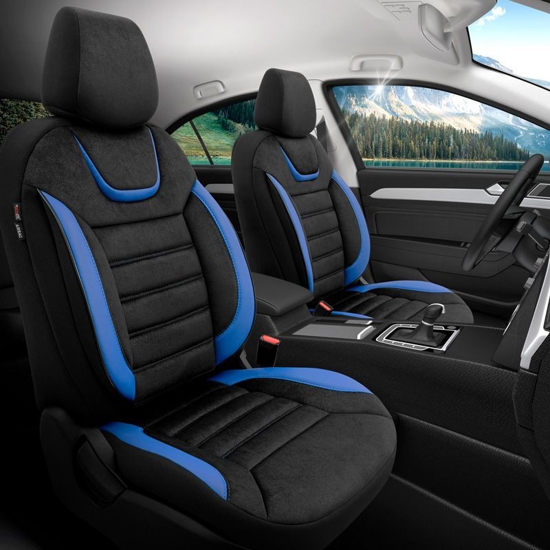 Universele Suede/Leder/Stoffen Stoelhoezenset 'Iconic' Zwart/Blauw - 11-delig - geschikt voor Side-Airbags