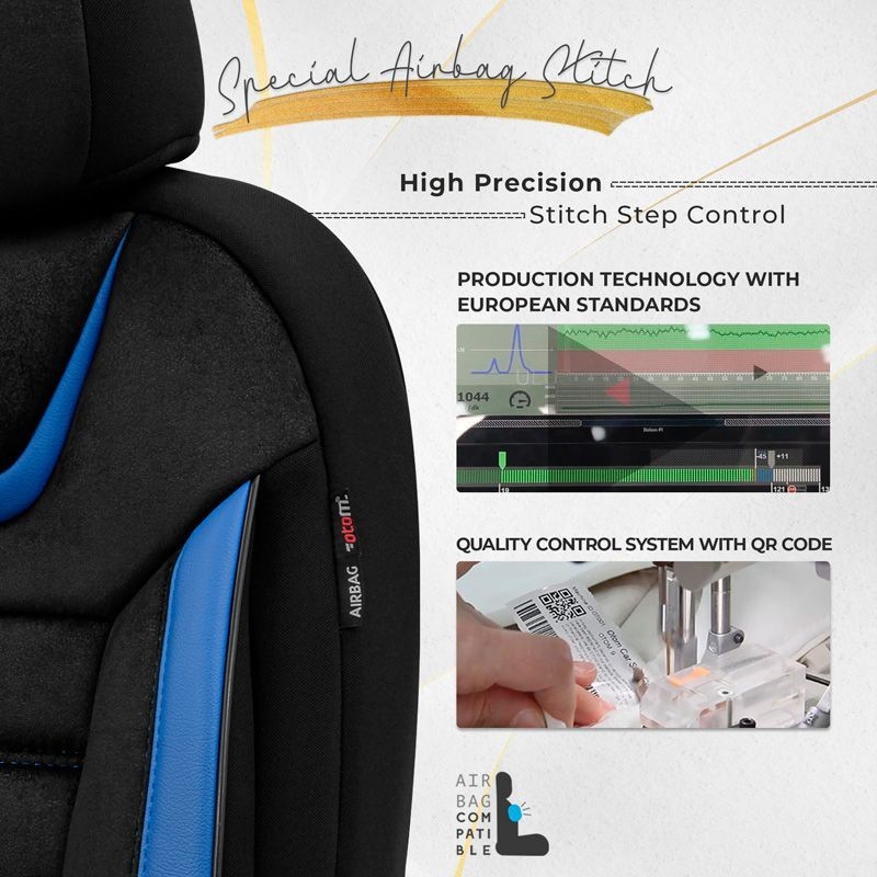 - Geschikt voor Airbags: Airbag-labels laten zien dat de stoelhoezen onderworpen zijn aan airbagtests.