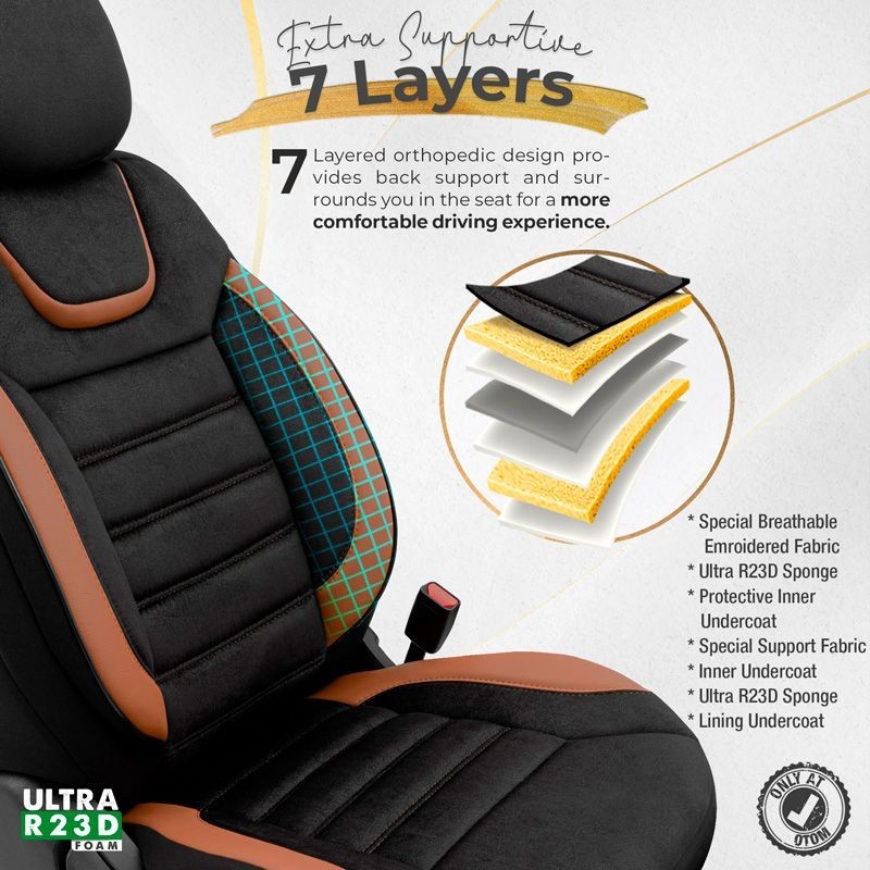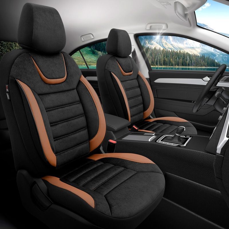 Universele Suede/Leder/Stoffen Stoelhoezenset 'Iconic' Zwart/Terracotta- 11-delig - geschikt voor Side-Airbags