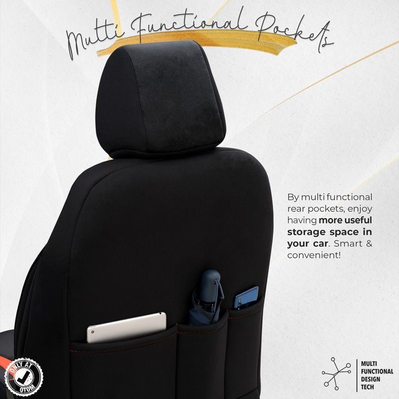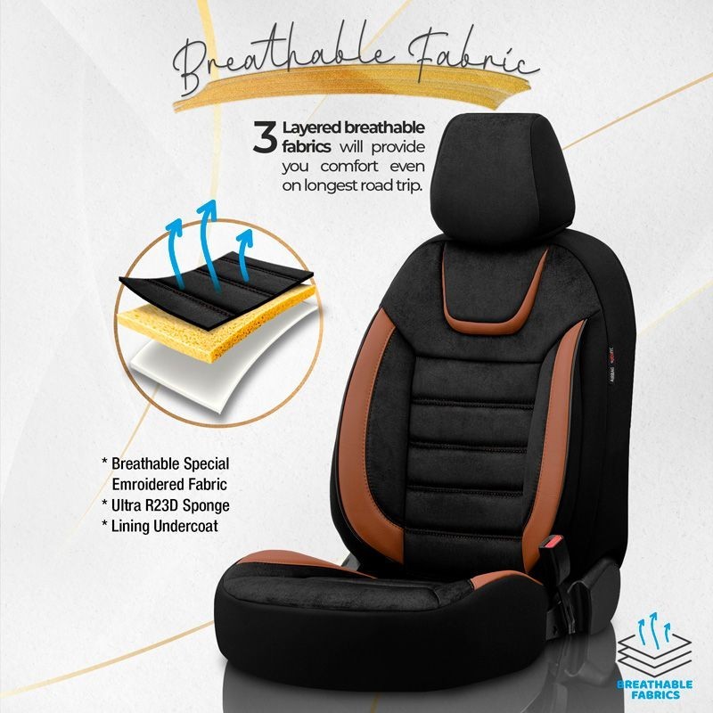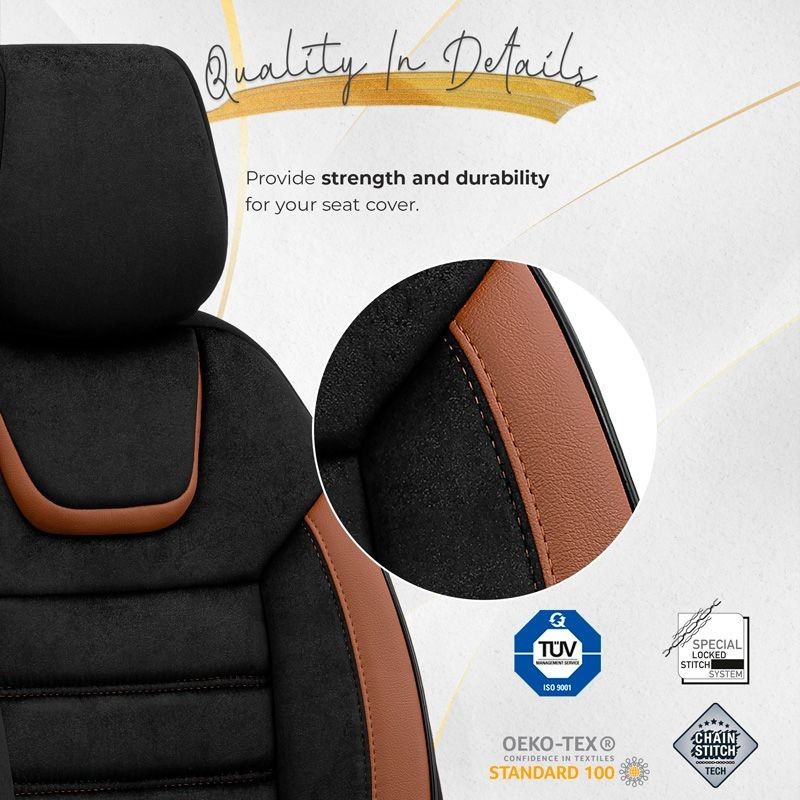 Universele Suede/Leder/Stoffen Stoelhoezenset 'Iconic' Zwart/Terracotta - 11-delig - geschikt voor Side-Airbags