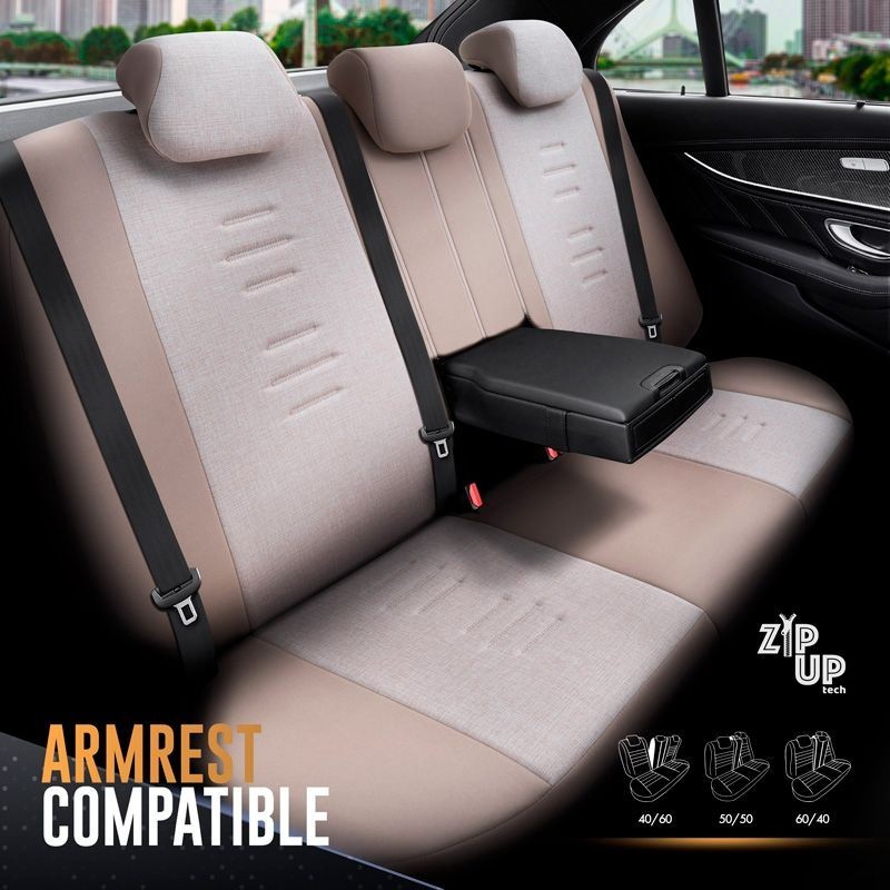 Universele Linnen/Leder/Stoffen Stoelhoezenset 'Throne' Crème - 11-delig - geschikt voor Side-Airbags