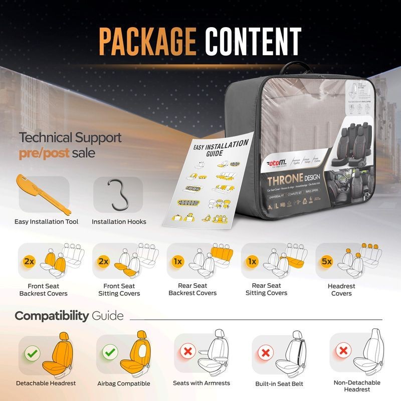 - Geschikt voor Airbags: Airbag-labels laten zien dat de stoelhoezen onderworpen zijn aan airbagtests.