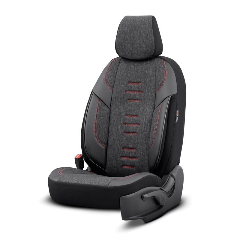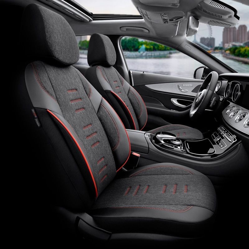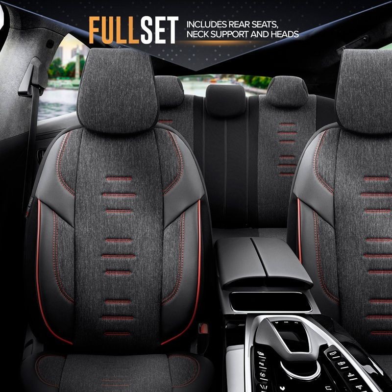 Universele Linnen/Leder/Stoffen Stoelhoezenset 'Throne' Zwart/Grijs/Rood - 11-delig - geschikt voor Side-Airbags