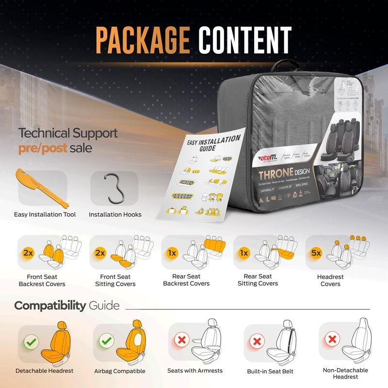 - Geschikt voor Airbags: Airbag-labels laten zien dat de stoelhoezen onderworpen zijn aan airbagtests.